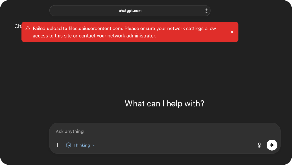 File uploads in ChatGPT all go through oaiusercontent.com , which are OpenAI’s file hosting servers.